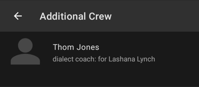 It should be noted that Jones is also listed as a dialect coach for Ben Mendelsohn and Lashana Lynch on 2019’s Captain Marvel. Lynch, being a British-born actress would likely need such a coach to get her accent just right for an American character. So that much checks out. It is possible for people to edit or add a false listing on IMDB, or so I’m told. But in general, the types of edits that wind up being fake are the really big deals that seem a bit too good to be true or wishful thinking on some fan’s part. While Lynch’s return is certainly a very welcome one, it doesn’t really fall under those standards.