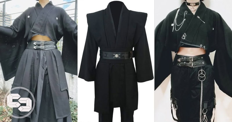 However, the design is also modernized, featuring modern aesthetics that look like something out of a Cyberpunk fashion show. Lots of use of techwear & unconventional belt designs. The best way to picture it, according to one source, would be to visualize Obi-Wan Kenobi’s costume from Star Wars: Revenge of the Sith from the belt portion up; however, it’s all black (and there are alternating designs between sleeveless and with sleeves). Meanwhile, the bottom portion has techwear pants and a futuristic design. “It looks like a Star Wars character”, says one source. What’s more interesting is that this character carries a katana with her.